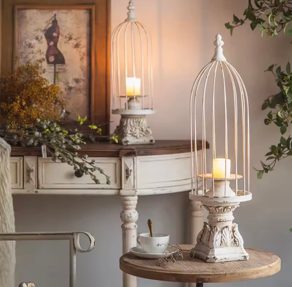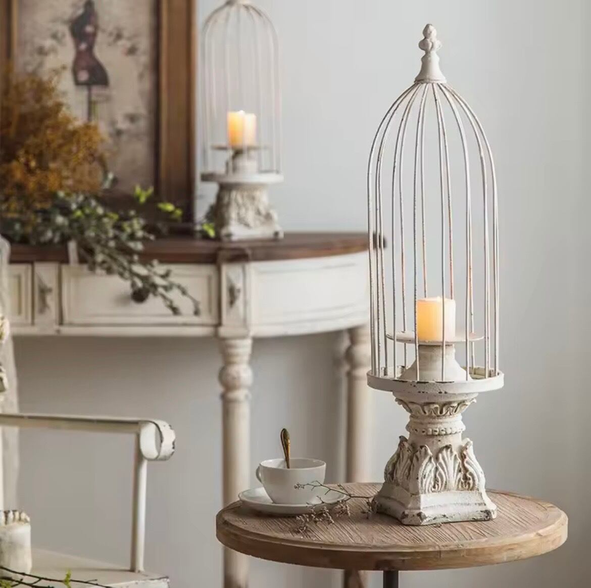 鳥かごの形をしたレトロな燭台